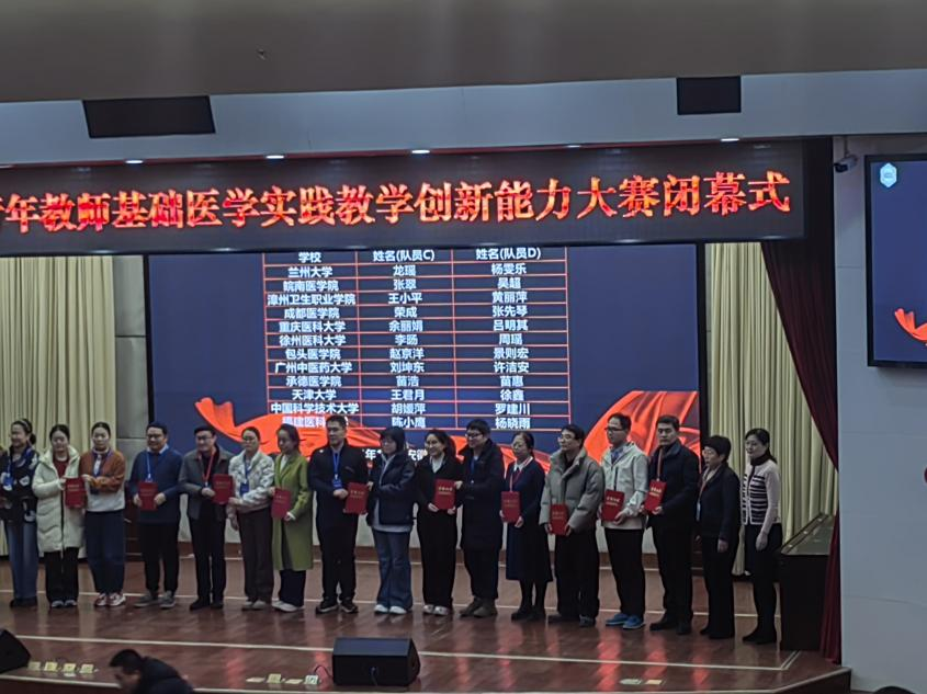 12月26-28日,由高等学校国家级实验教学示范中心联席会基础医学组、高等学校基础医学教师实践技能协同创新发展联盟主办,安徽省病理生理学会及安徽医科大学承办的首届高等学校“青年教师教学创新能力(基础医学实验技能专项)”大赛在合肥举行。安徽省病理生理学会副理事长、学院经理李曙教授带队参加比赛。