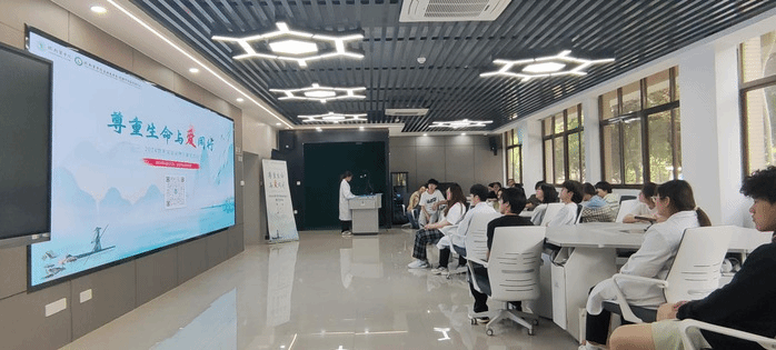 活动当天,机能中心党支部党员教师介绍了实验动物对于人类生命科学研究的贡献以及在医学实验教学过程中发挥的巨大作用,强调了善待实验动物的“3R”原则,倡导大家在平时的实验课中秉持敬重生命的意识,维护实验动物的生命尊严。同学们共同观看纪录片《实验动物简史——生物医学发展史的缩影》,了解生物医学的发展与实验动物的使用之间密不可分的联系。随后,同学们进行集体宣誓,心存感恩和敬畏,致敬无言的动物英雄。