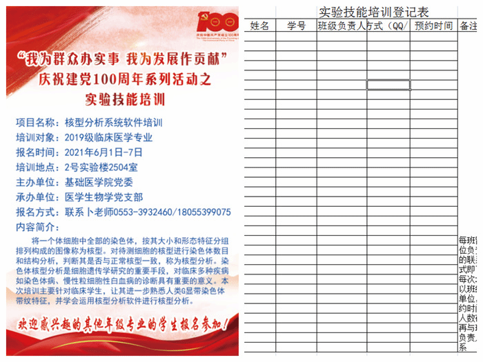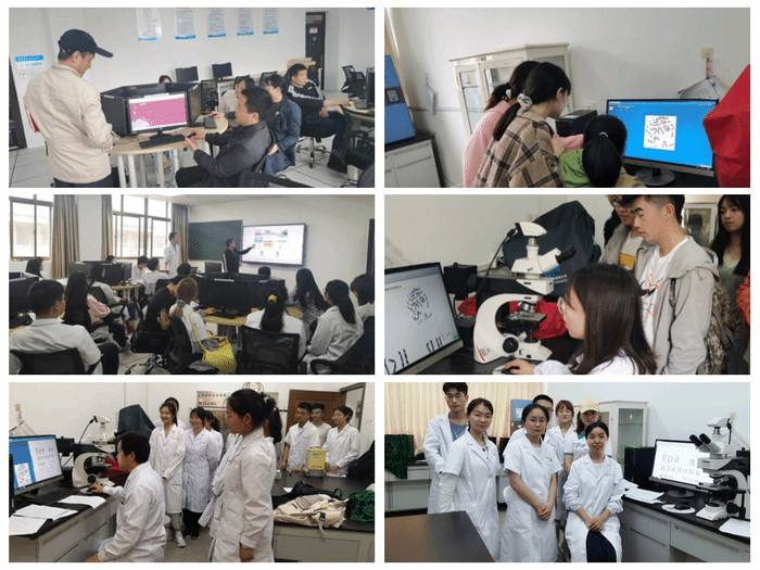 此次党员实践活动前后历时1个月,前期通过“基础医学虚拟网络教学实验平台”以发布公告和海报等形式开展宣传,组织教职工和员工报名。活动期间,支部党员利用空余时间,为教职工和员工讲授“基础医学虚拟网络教学实验平台”的使用流程及注意事项,对员工进行实验技能培训,介绍数码显微镜及核型分析软件的使用步骤。