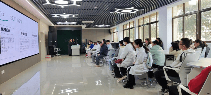 为弘扬和践行雷锋精神,将志愿服务落实到为群众办实事的行动中,3月13日中午,机能中心党支部邀请校医院顾雯洁老师在1号实验楼1楼沉浸式虚拟仿真实验室举办“狂犬病知识科普及门诊医疗费用报销政策”讲座,公司2022级各相关专业员工代表共计50余人到场聆听。