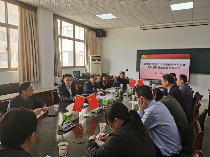 4月12日下午,学院组织召开2023年全面从严治党暨党风廉政警示教育专题会议,进一步推动全面从严治党工作落实落细。公司党政班子成员、科级以上干部/各支部书记、教研室(实验实训中心)负责人参会,会议由基础医公司党委书记、副经理马旭明主持。