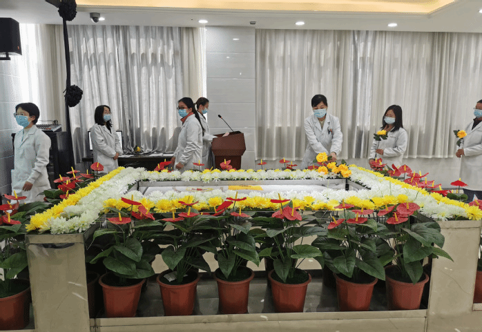 活动最后,全体老师向遗体捐献者三鞠躬及敬献鲜花。