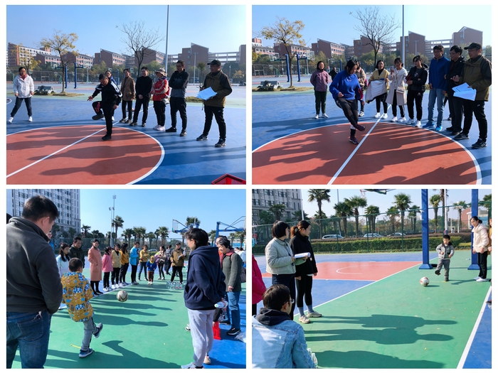 赛前,参加比赛的老师们早早就来到滨江校区篮球场热身,仔细琢磨每项比赛规则,并反复练习。团体项目分别进行了障碍滚铁环、踢毽子、螃蟹背西瓜、蜈蚣竞走、定点投篮等五个项目,赛场上大家个个激情饱满、全神贯注、团结协作、全力以赴,共享团队的欢乐与喜悦。亲子项目“足式保龄球”,旨在促进家长与孩子的情感交流,创造和谐的家庭关系。赛场上,家长与孩子巧拙互动,爱意满满。加油声、呐喊声此起彼伏,赛场上空荡漾着参赛教师和孩子们的欢声笑语。