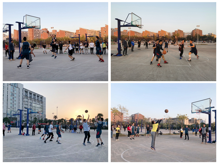 本次比赛为三人制篮球对抗赛,分两个阶段进行,第一阶段小组循环(11月9日至11日),第二阶段复赛(11月12日至13日)。在小组赛前,学院工会组织参赛队员进行磨合训练,积极备战。小组赛上,队员们情绪高涨、配合默契,用激情与汗水传达着对运动、对生活的热爱,最终以小组赛全胜的成绩出线。