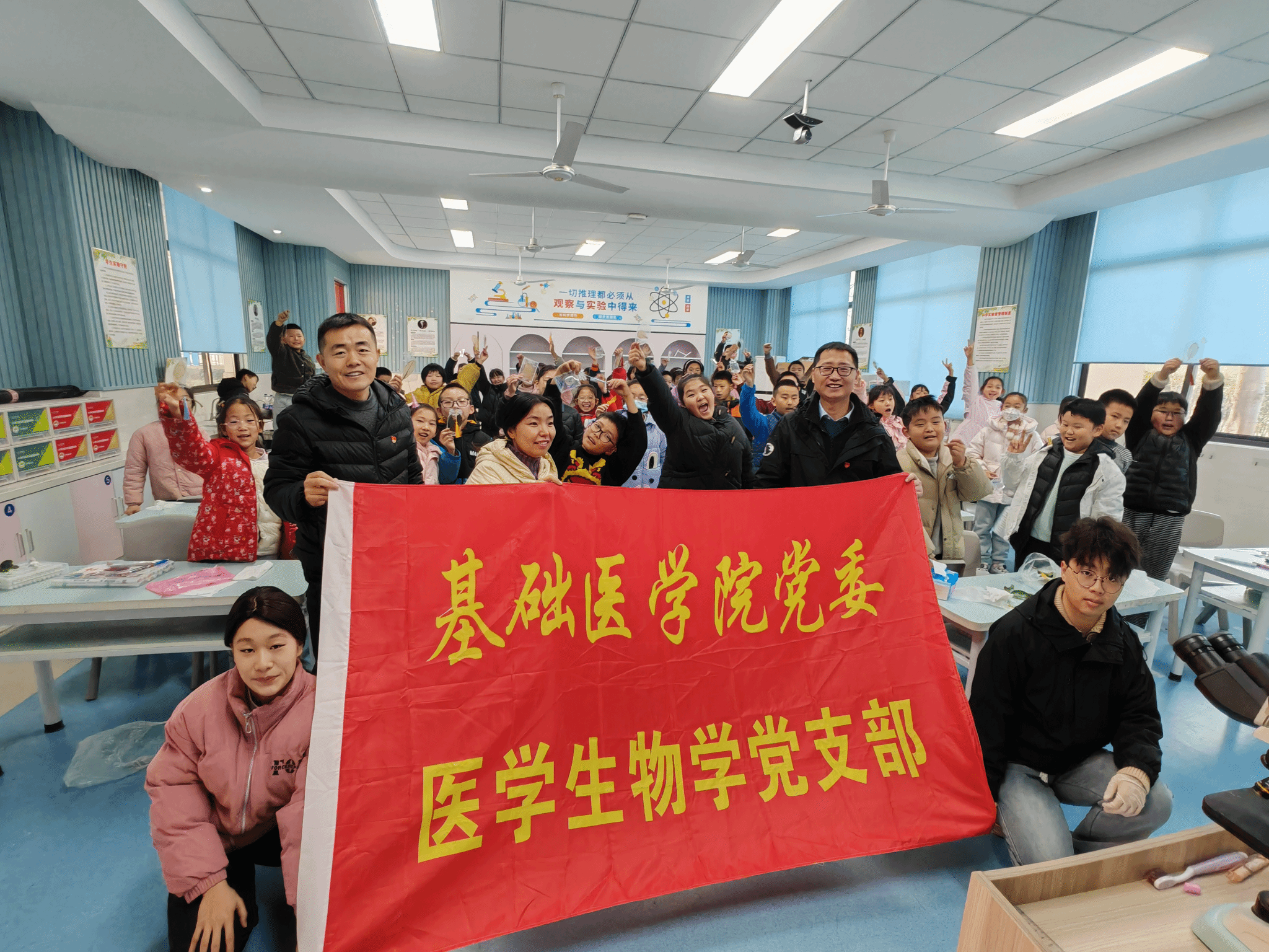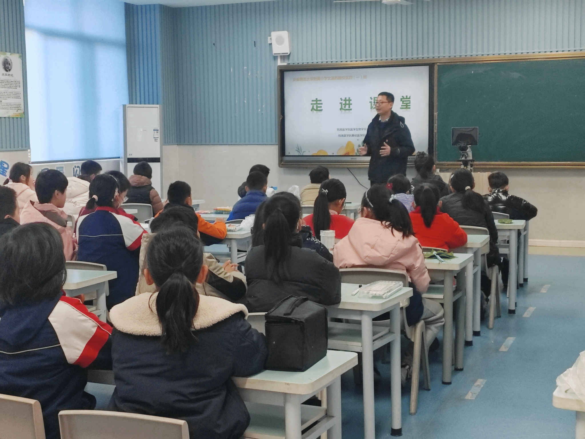 12月18日,医员工物学党支部联合学院团总支至安徽师范大学附属小学文昌西路校区开展以“一叶知世界”为主题的科普进校园活动。党员志愿者们以常见的树叶为切入点,通过趣味讲解、动手实践、互动游戏等丰富形式,为孩子们开启了一场奇妙的植物科学探索之旅,让自然科学知识在轻松愉快的氛围中扎根生长。