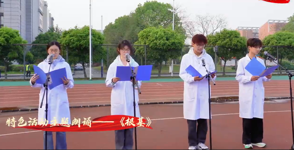 随后,2025级四位同学深情演绎原创主题朗诵《根基》。朗诵以历史为镜,回顾中华民族曾经山河破碎、书桌难安的沉痛记忆,深刻揭示“没有国家安全,何来万家灯火”的真理,并将国家安全从传统边境哨所延伸至网络、生物、数据等非传统安全领域,聚焦基础医学专业员工的使命担当,表达了以基础研究守护人民健康、筑牢国家安全根基的坚定信念。