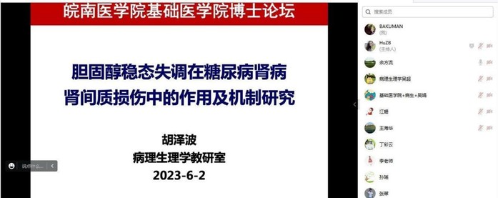 为充分调动教师开展科学研究的积极性,浓厚校园学术氛围,6月2日上午,科研处联合tyc8722太阳集团开展第九十三期博士论坛,邀请病理生理学教研室胡泽波博士主讲。报告以线上形式举行,相关专业教师和在读研究生参加。