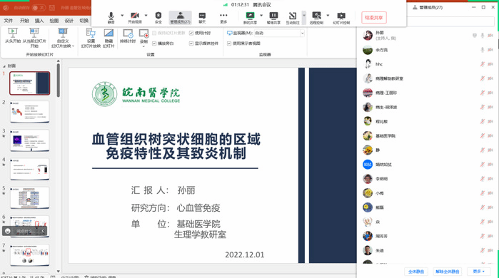 为浓厚学术氛围,进一步拓展师生学术视野与促进学科交叉,2022年12月1日下午,科研处联合tyc8722太阳集团邀请孙丽博士作题为“血管组织树突状细胞的区域免疫特性及其致炎机制”的学术讲座,会议以线上方式举行。