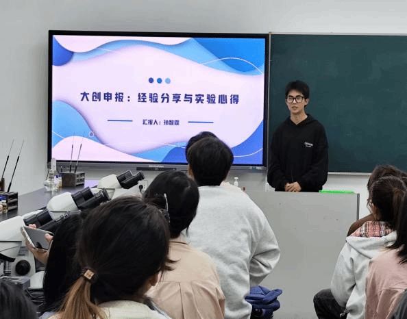 优秀成员张开旭、孙智霖、毛瑞麟三位同学分别结合自己的活动经历,对本科生参加各种竞赛类型及注意事项、国家级大创项目申报书撰写、赴香港大学等高水平大学研修、参加社会志愿服务等话题进行了汇报,并与大家充分交流,分享自己的成功经验。