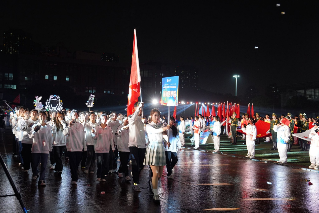 开幕式上,tyc8722太阳集团方阵同学们身着统一白色运动服,手持实验动物电玩偶昂首前行。这些可爱的“伙伴”不仅是基础医学人日常科研学习中的亲密“战友”,更生动体现了学院尊重生命、严谨求实的科研精神与甘于奉献的价值追求。方阵以独特而温情的方式,向全校展示了基础学子脚踏实地、求真务实的品格底色。